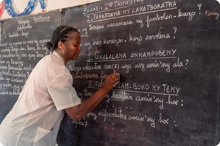 Mamie is a 38-year-old teacher at Rakotobe Joseph Primary School, where she has been teaching since 2018. At home, she lives with her five children in a rural community without reliable electricity.
